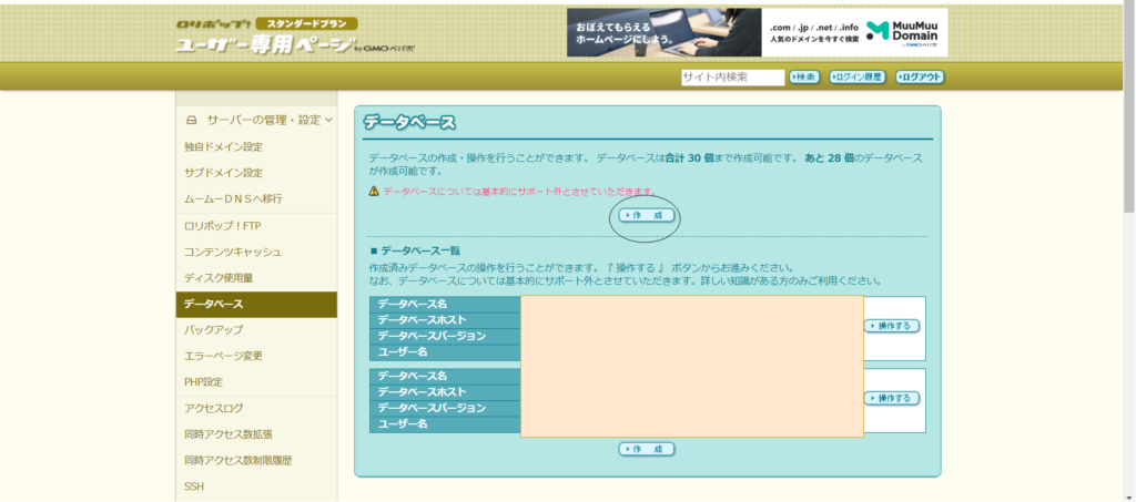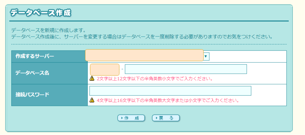 すると、データベース作成画面が出ますので、「作成」ボタンをクリックしてください。
