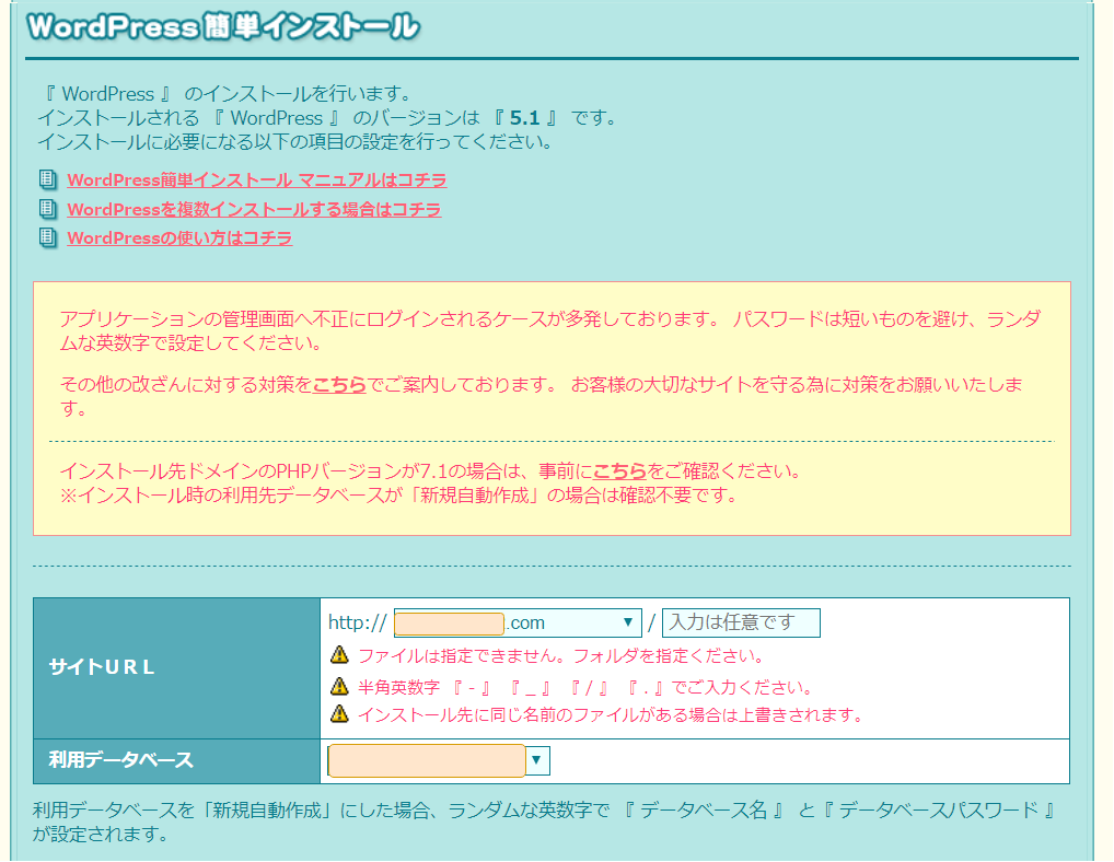 ですが、その場合データベース名やパスワードが自動的に決められてしまうので、将来のことを考えて自分で設定しておきましょう。