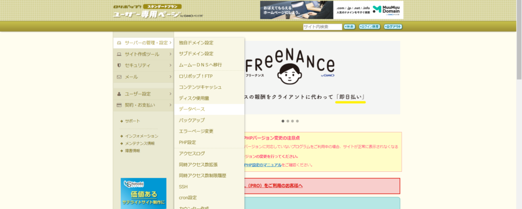 そして、「サーバーの設定・管理」→「データベース」を選択します。