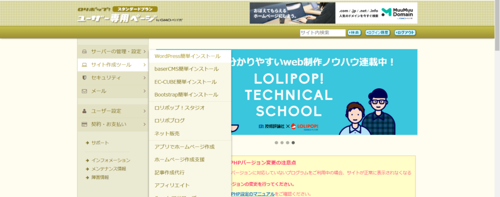 まず、前回決めた独自ドメインとパスワードでロリポップサーバにログインしてください(ロリポップアカウントとパスワードでも可)。