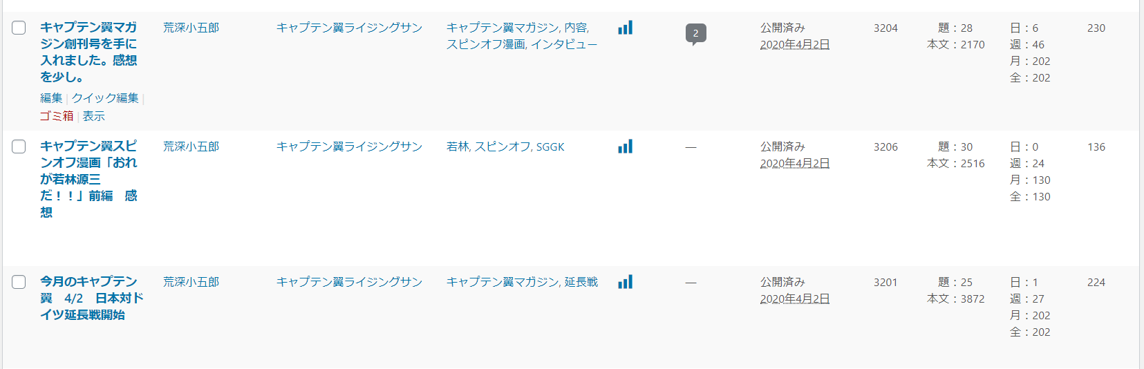 WordPressを使用していると、時々投稿一覧を見た際に、下記の画面のようにタイトルが縦書きになっている場合があります。