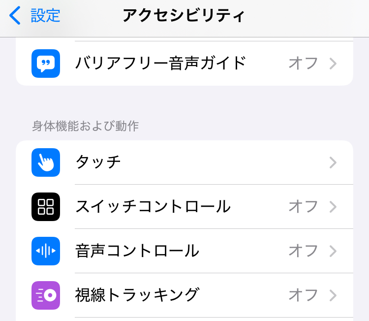 1. 「タッチ」を選択