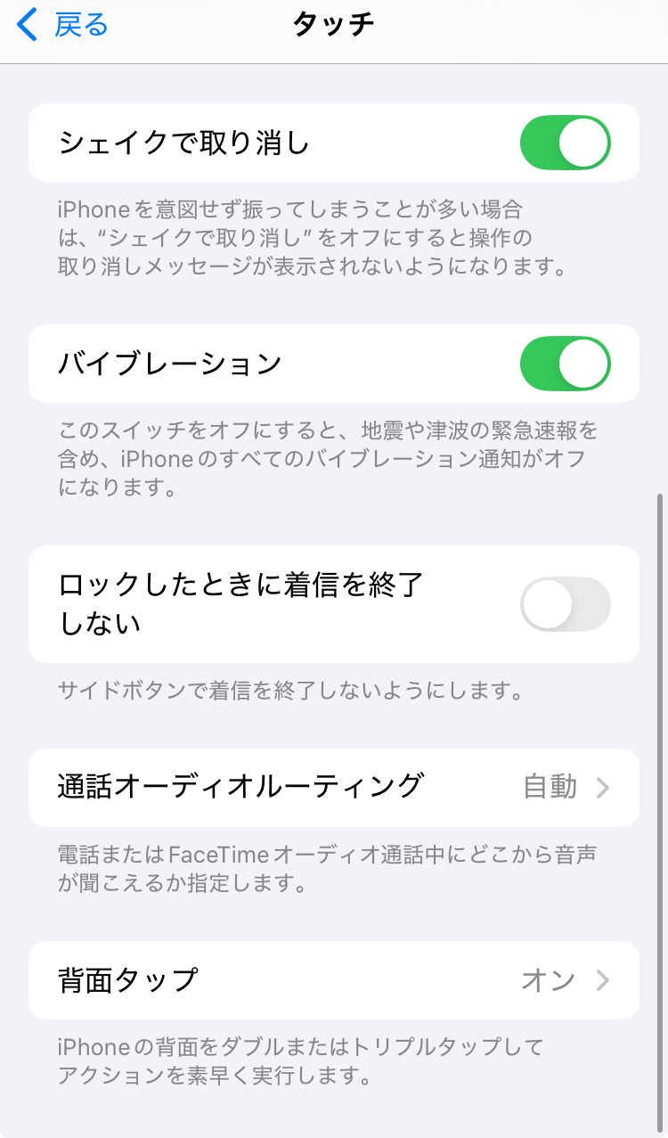 2. 一番下にある「背面タップ」をタップ