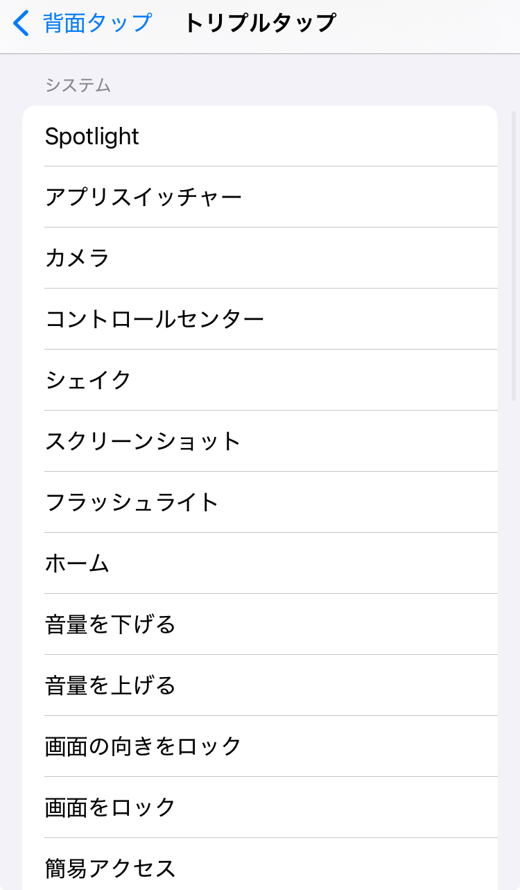 • トリプルタップ(3回タップ)にも別の操作を割り当てることができます。たとえば、コントロールセンターを開く、アプリを起動するなど。