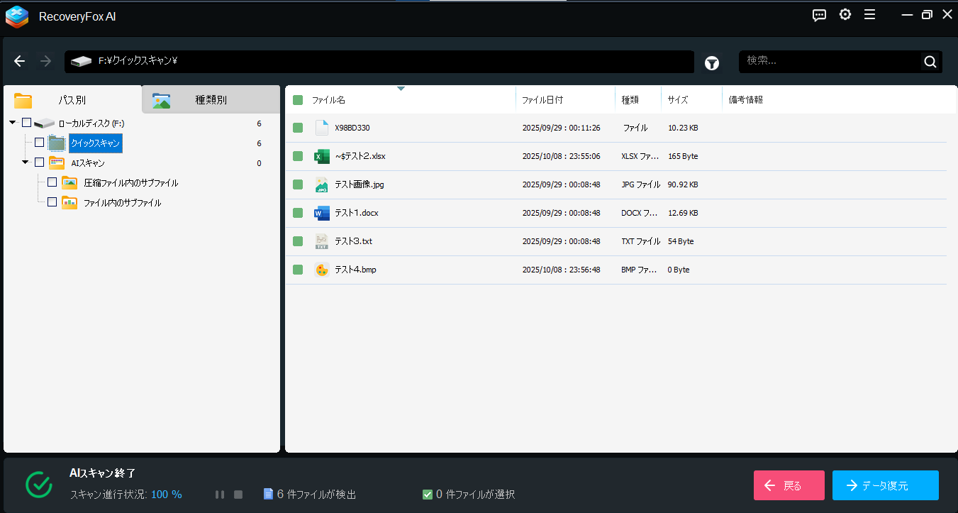 RecoveryFox AIなら、無料版で「復元可能かどうか」をプレビューで確認できます。