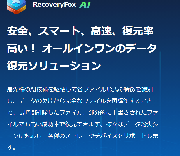 この記事では、そんな頼れる復元ソフト 「RecoveryFox AI」 の特徴や使い方をわかりやすく紹介します。