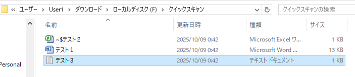 先程よりファイル数が増えていますが、これは以前にUSB内に作られていたファイルが検出されたからです。