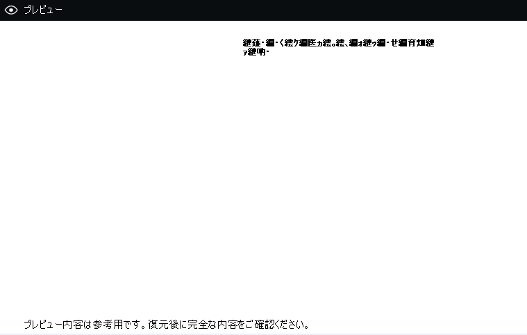 テキストファイルはプレビューでは文字化けしていましたが、復元後は普通に表示されました。